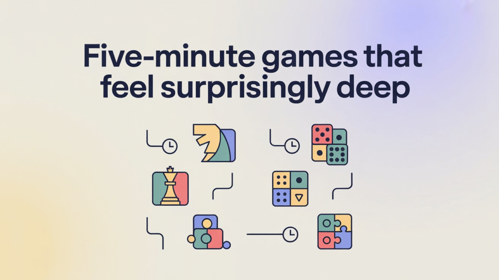 Five-Minute Games That Seem Deeper Than They Are: 5-Minute games that seem Deep are games that are short but still have a lot of thinking, strategizing, and/or emotional investment within a span of a few minutes. They may appear straightforward, but every choice can matter – gameplay has meaningful weight. Even brief sessions can challenge your mind or make you think creatively.