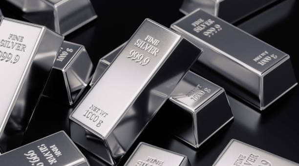Silver bars laying on black background. Horizontal composition with copy space. Wealth and finance concept.